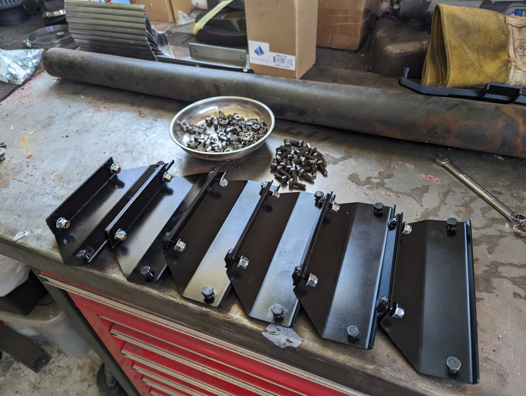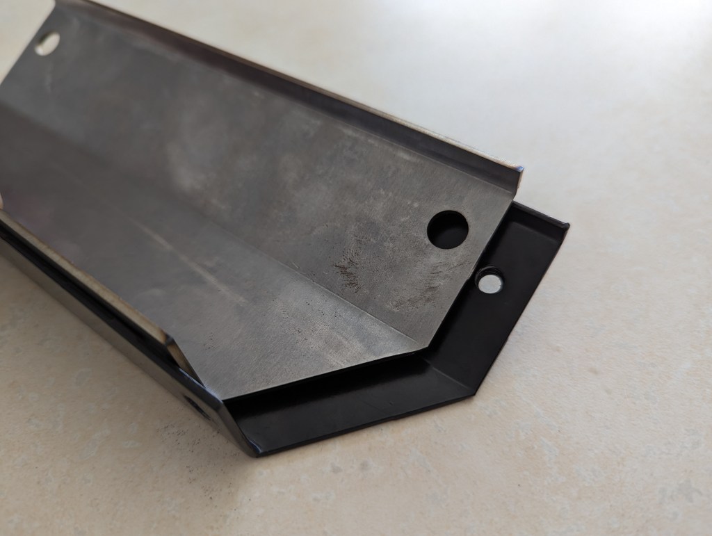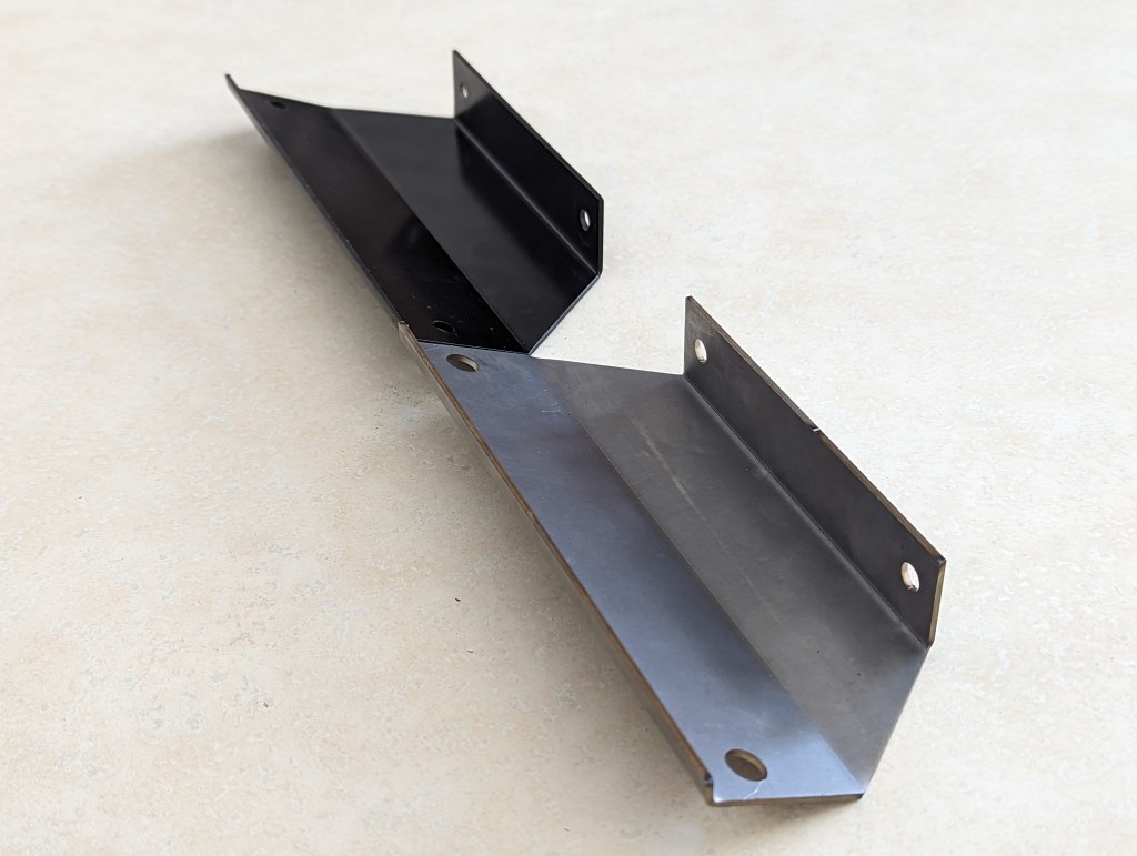 How close did I get to reproducing the OEM bracket you may wonder? Well here’s my side by side inspection I did myself when they arrived. The only real difference between them is the flange width on the lower edge, which was a product of production limitation. To achieve the bend, the material had to have a certain length past the bend line for it to be produced. Otherwise, and I know I am a little bias, these are spot on.